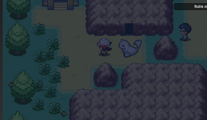 saia da ruina, e volte o caminho, agora, quando você chegar no local onde você pegou metal coat, vá para a direita e dessa onde tinha outro policial bloqueando a passagem , ele irá ter liberado a passagem. dessa até o fim, e vire para a esquerda você verá um cara. lute com ele. durante a luta dará para capturar a alguns pokemons.