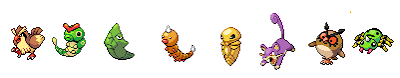 lá você encontrará mas weddle, kakuna, ou cartepie e metapod , hoothoot, ratata.