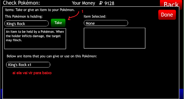 click espaço para pegar depois vá em pokepad, depois vá no seu onix e click em itens, e siga essa sequencia, depois salve para garantir, as vezes não dar para salvar, então faça a mesma trajetória até conseguir salvar.
