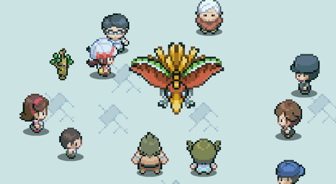 deça e verá varias pessoas e o ho-oh no meio ferido